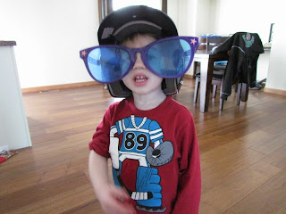 Brody, picking up Mr Potatohead, etc, after much arguing. Finally deciding to use one of his favorite items at Granny's house...the little broom!